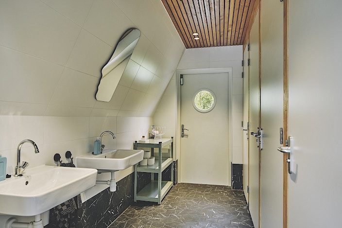 Er is een binnenruimte met douches om je lekker op te frissen.